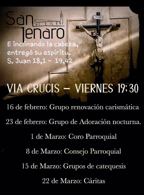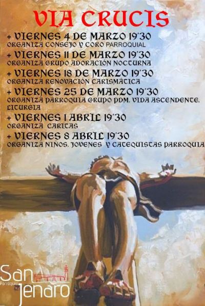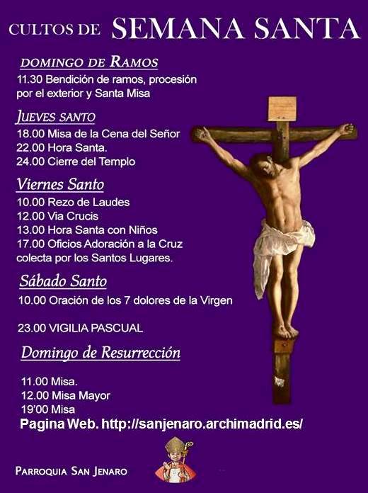 horas Rezo de Laudes, 12:00 h. Vía Crucis 17:00 h. Santos Oficios.
