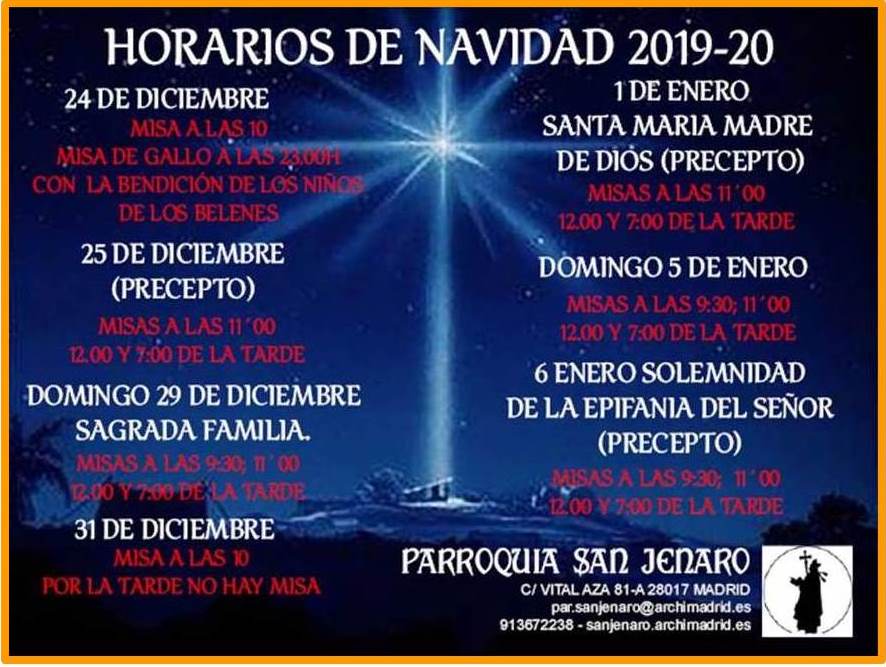 DE MISAS INVIERNO, COMIENZA EL 1 DE OCTUBRE Y LA MISA DE LAS