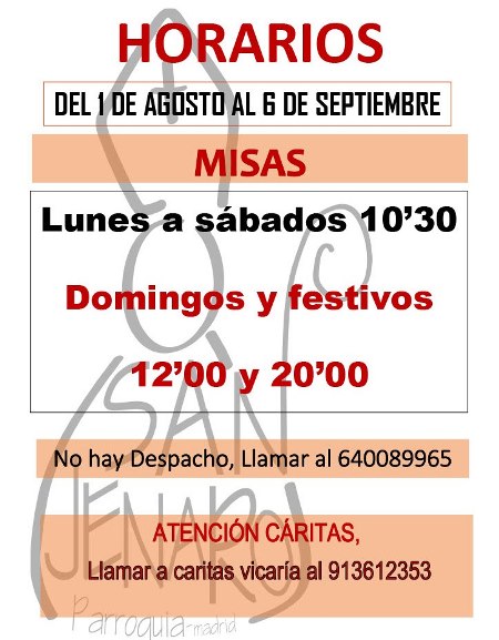 SEPTIEMBRE 2014: SÁBADO FIESTA DE NUESTRO PATRONO SAN JENARO